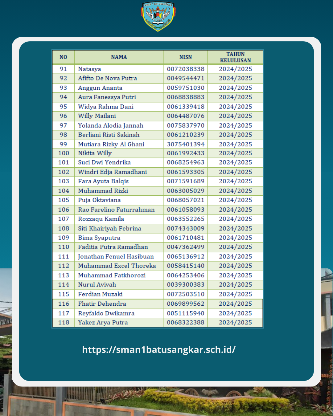 9 bulan yang lalu / Berita Sekolah dan Pengumuman (05-05-2025) : Hasil Pengumuman Kelulusan Peserta Didik Kelas XII SMAN 1 Batusangkar TA 2024/2025, dapat di lihat pada Menu Berita Sekolah dan Pengumuman